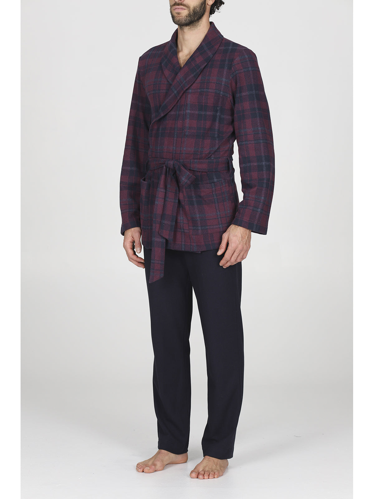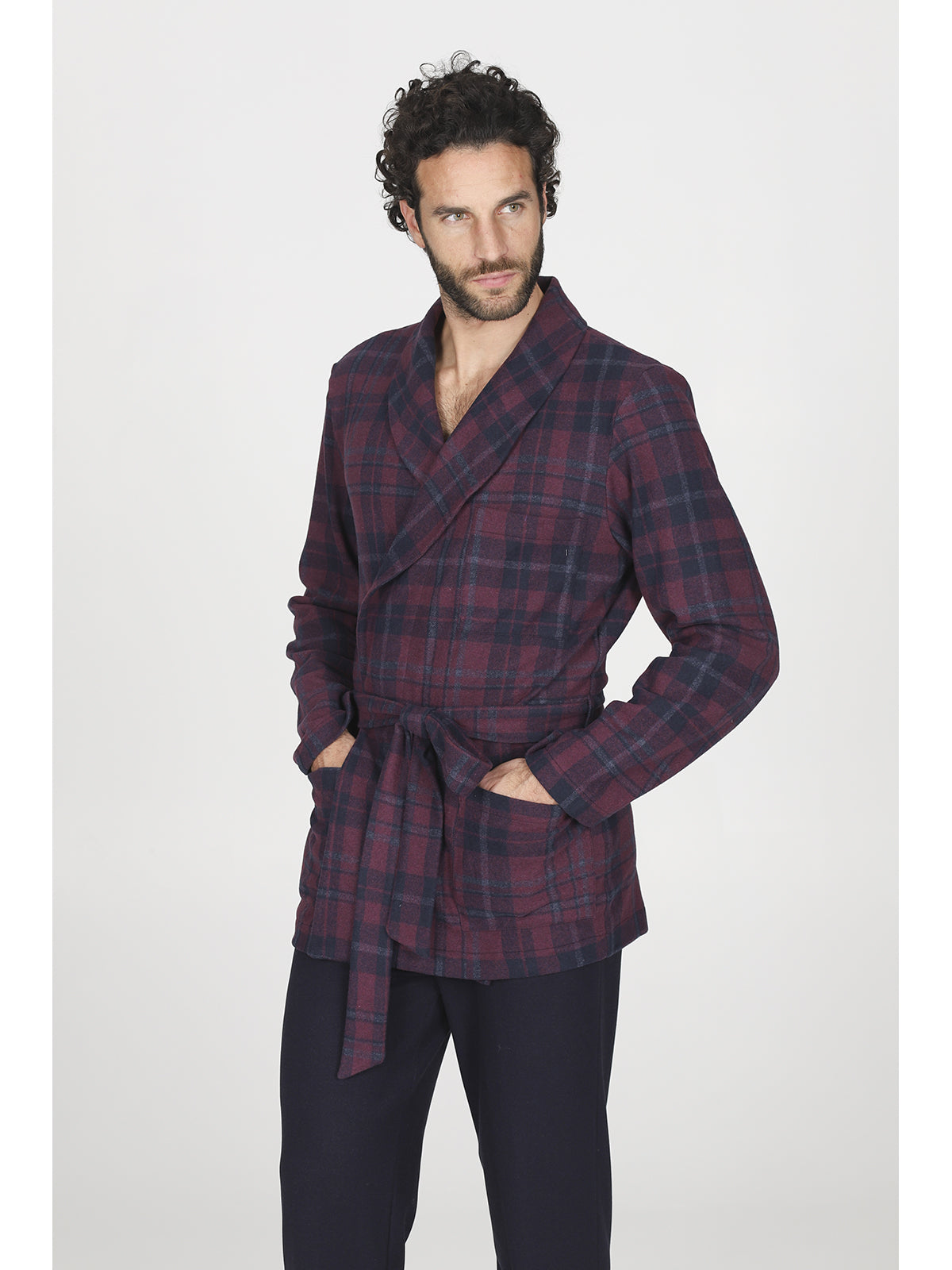 Giacca da camera in confortevole jacquard scozzese bordeaux