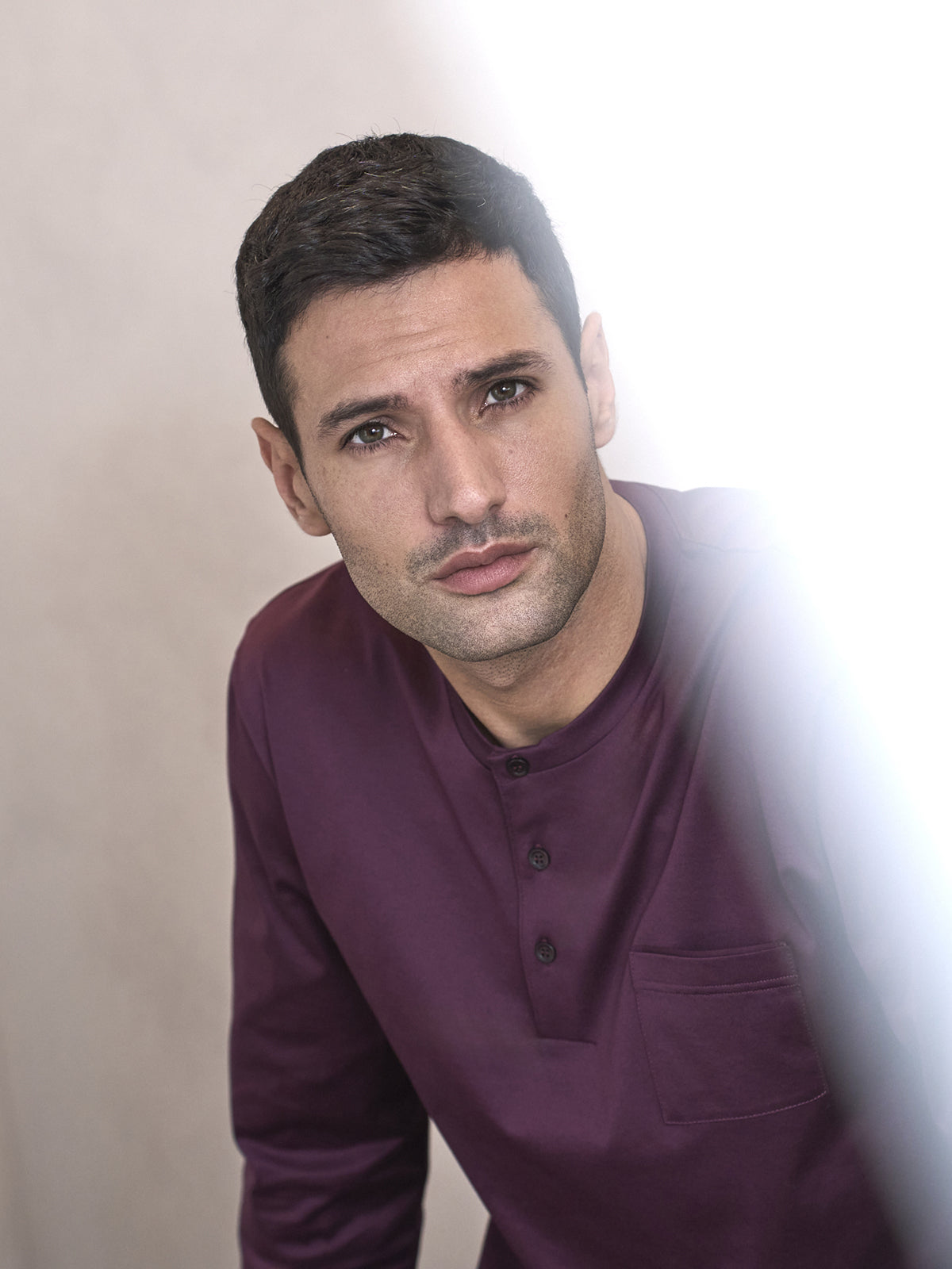The henley collar and chest pocket add a touch of refinement, making this garment suitable for moments of conviviality at home. Long sleeves and elasticated pants ensure freedom of movement, while the bordeaux color gives a contemporary and sophisticated vibe.