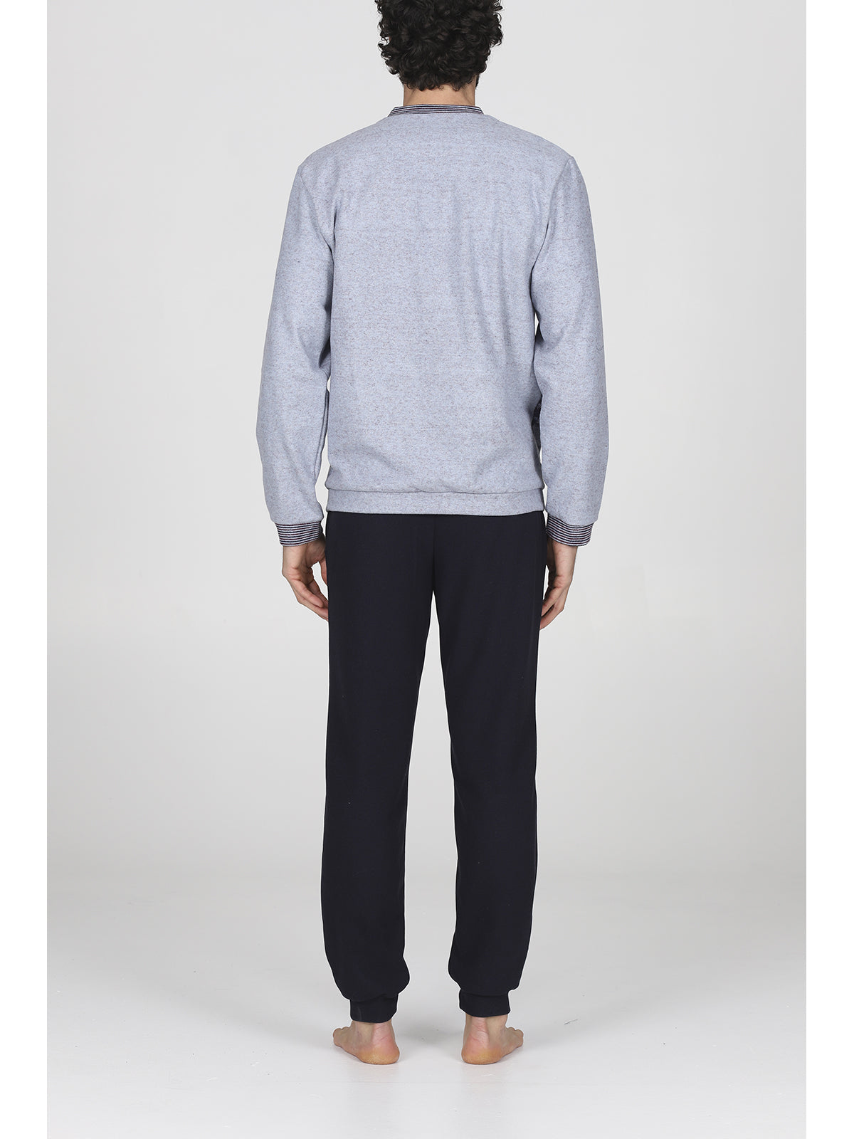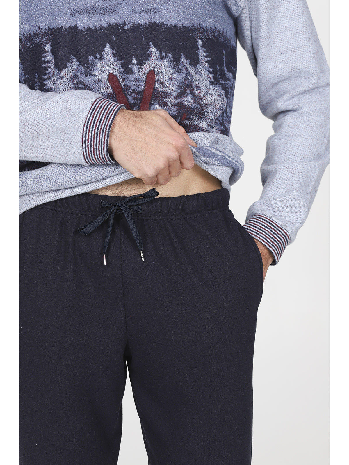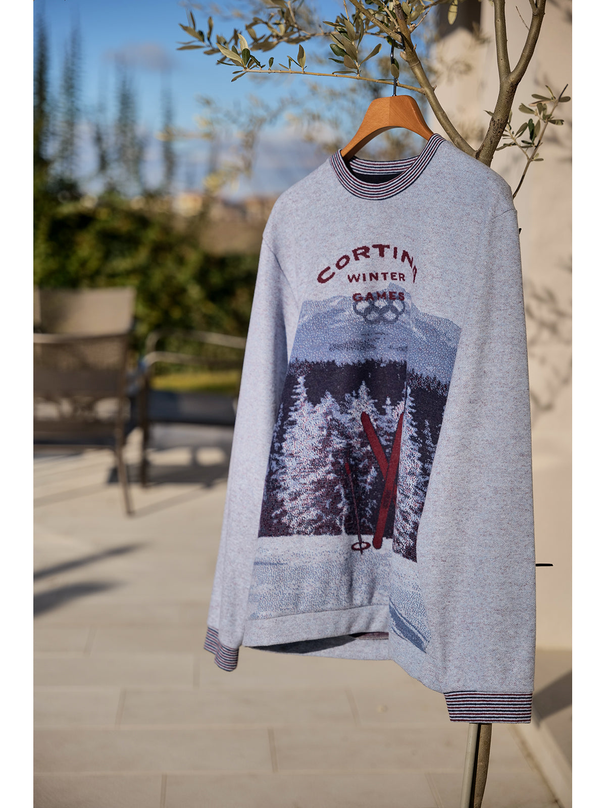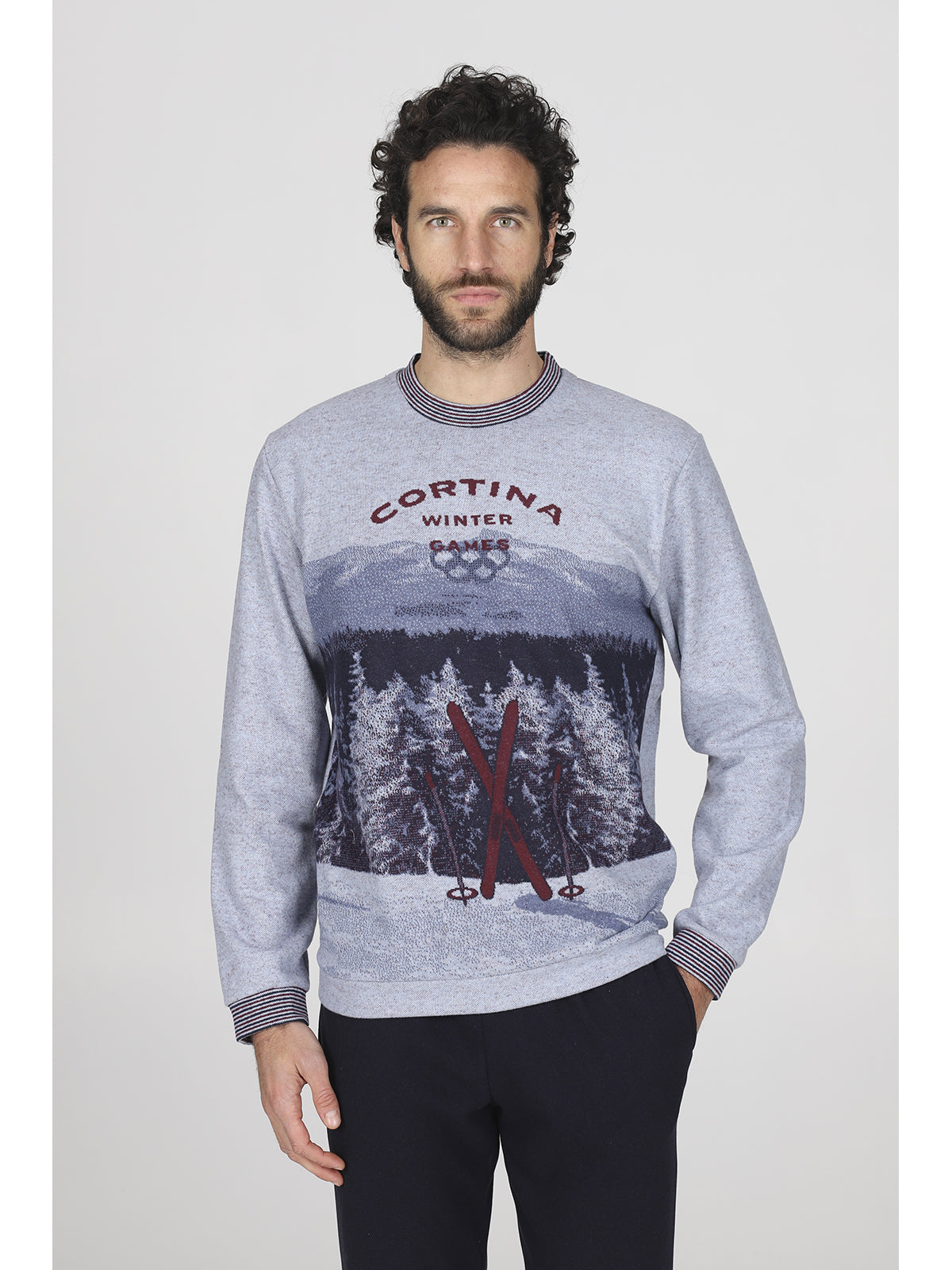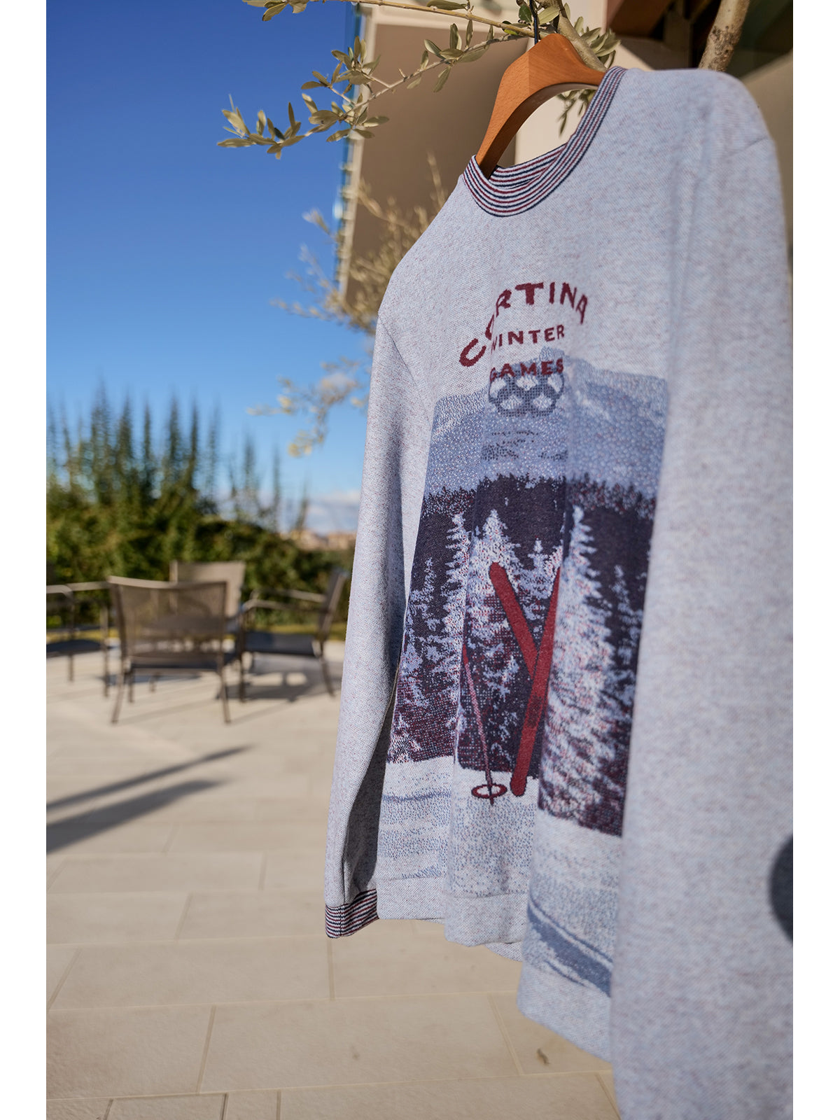 Pigiama uomo in jacquard Ecolife di misto cotone: caldo, elegante e pratico è adatto sia per la notte che al vestire in casa per un massimo comfort. Maglia girocollo con stampa piazzata ispirata ai giochi olimpici invernali Cortina 2026, da cui prende origine l'Artist Edition. Bordure e polsini a contrasto in nuance e dettaglio stemma. Un design ricercato, ideale per l’uomo che ama distinguersi anche a casa.