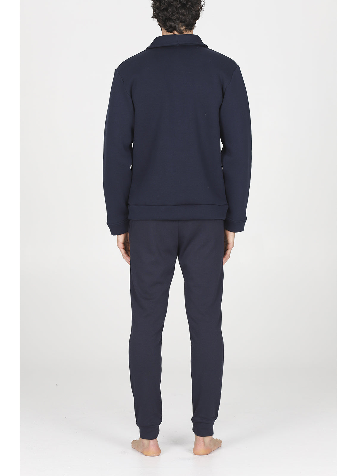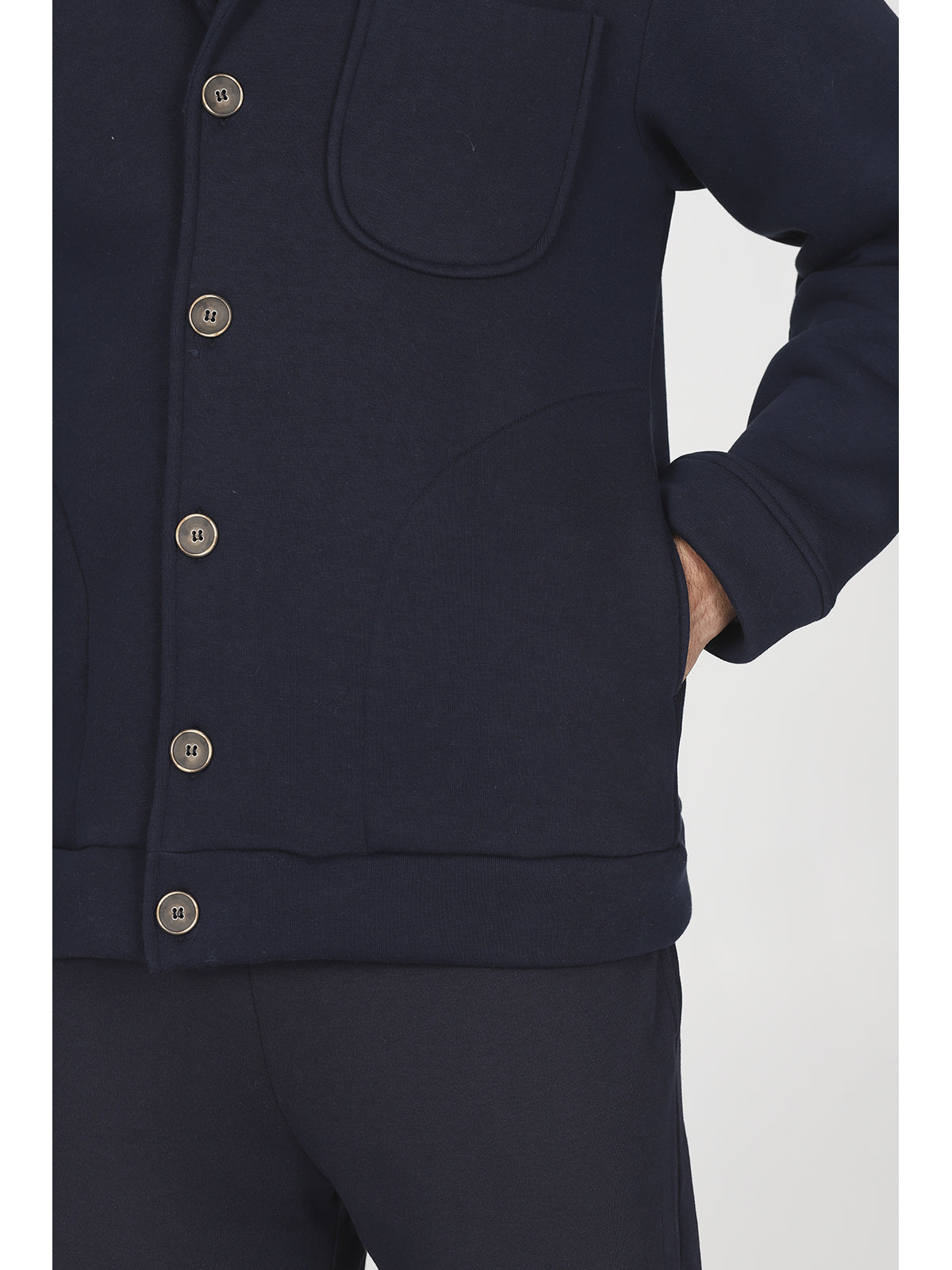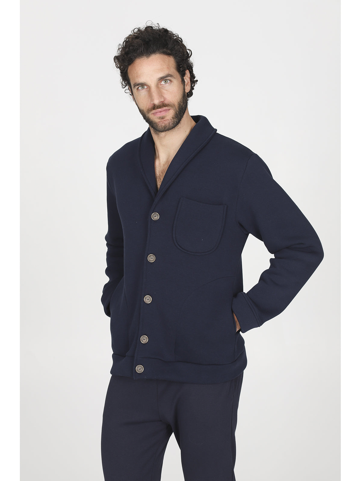 Parte della linea Travel, il modello è pensato per l’uomo che desidera sentirsi a proprio agio ovunque, dalla casa al weekend fuori porta, mantenendo sempre uno stile curato. Il taglio lineare e il colletto sciallato gli conferiscono un’eleganza discreta, mentre i bottoni frontali e la tasca arrotondata sul petto aggiungono un tocco sartoriale tipico di Julipet. Vestibilità regolare e confortevole, pensata per il relax.