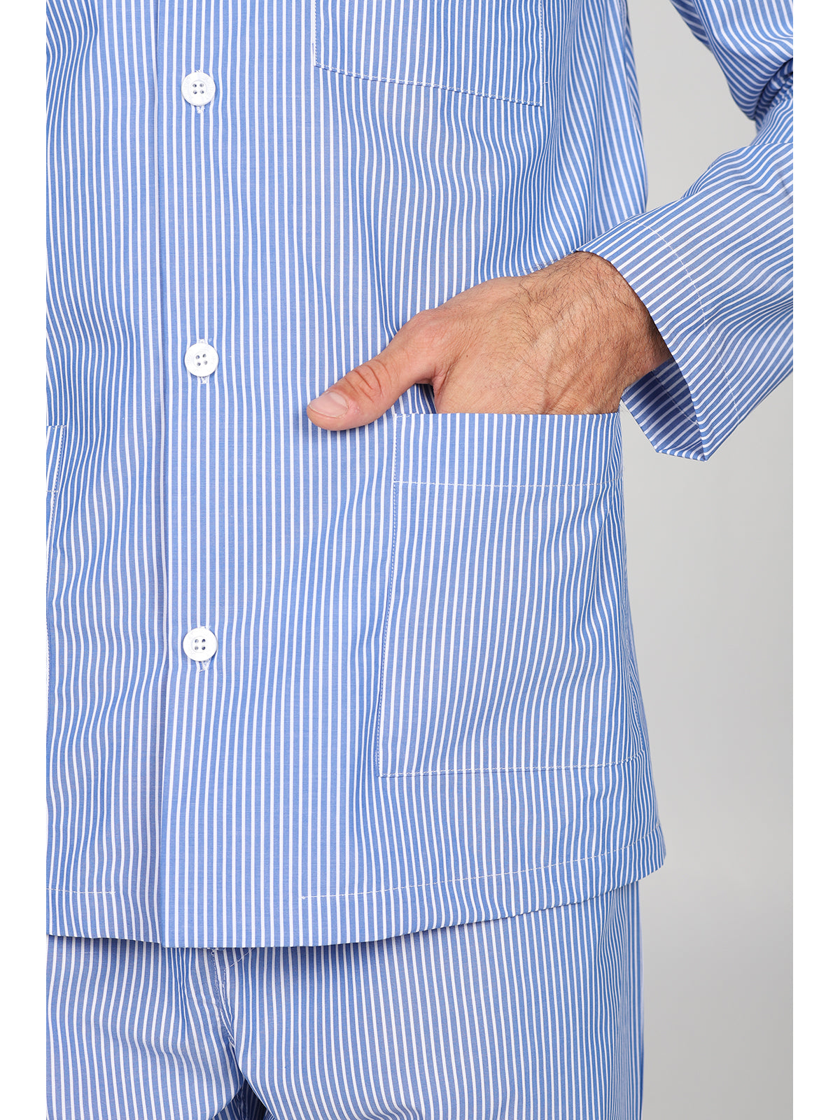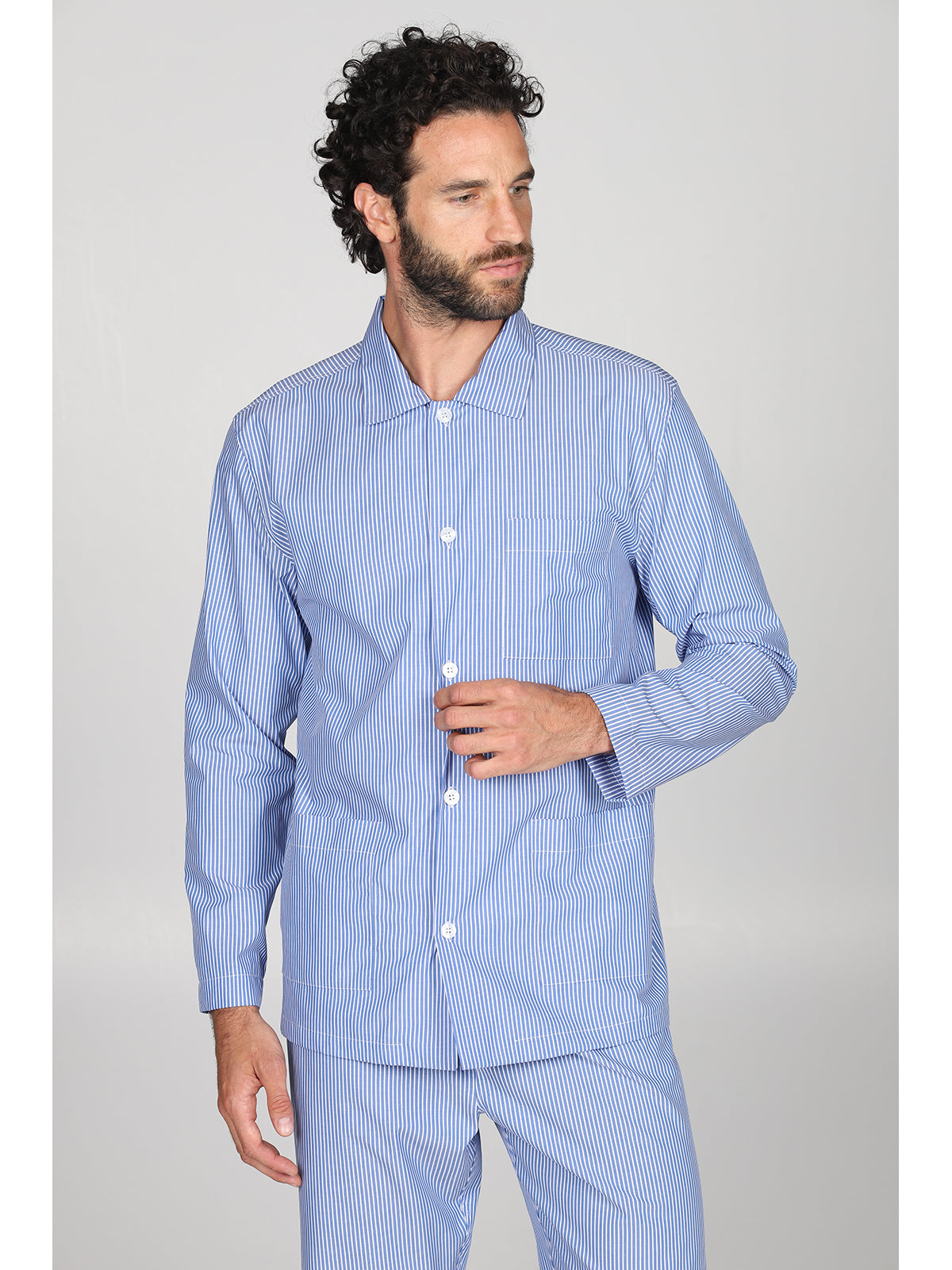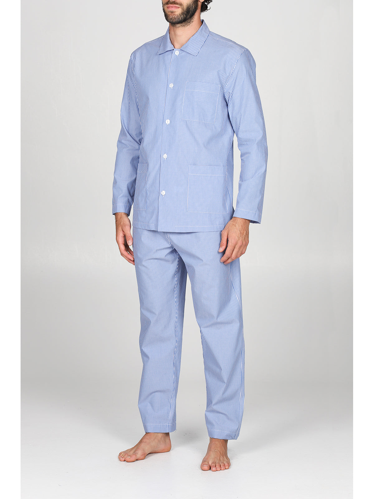 Pigiama cardigan classico uomo, in pregiato popeline tinto filo a righe