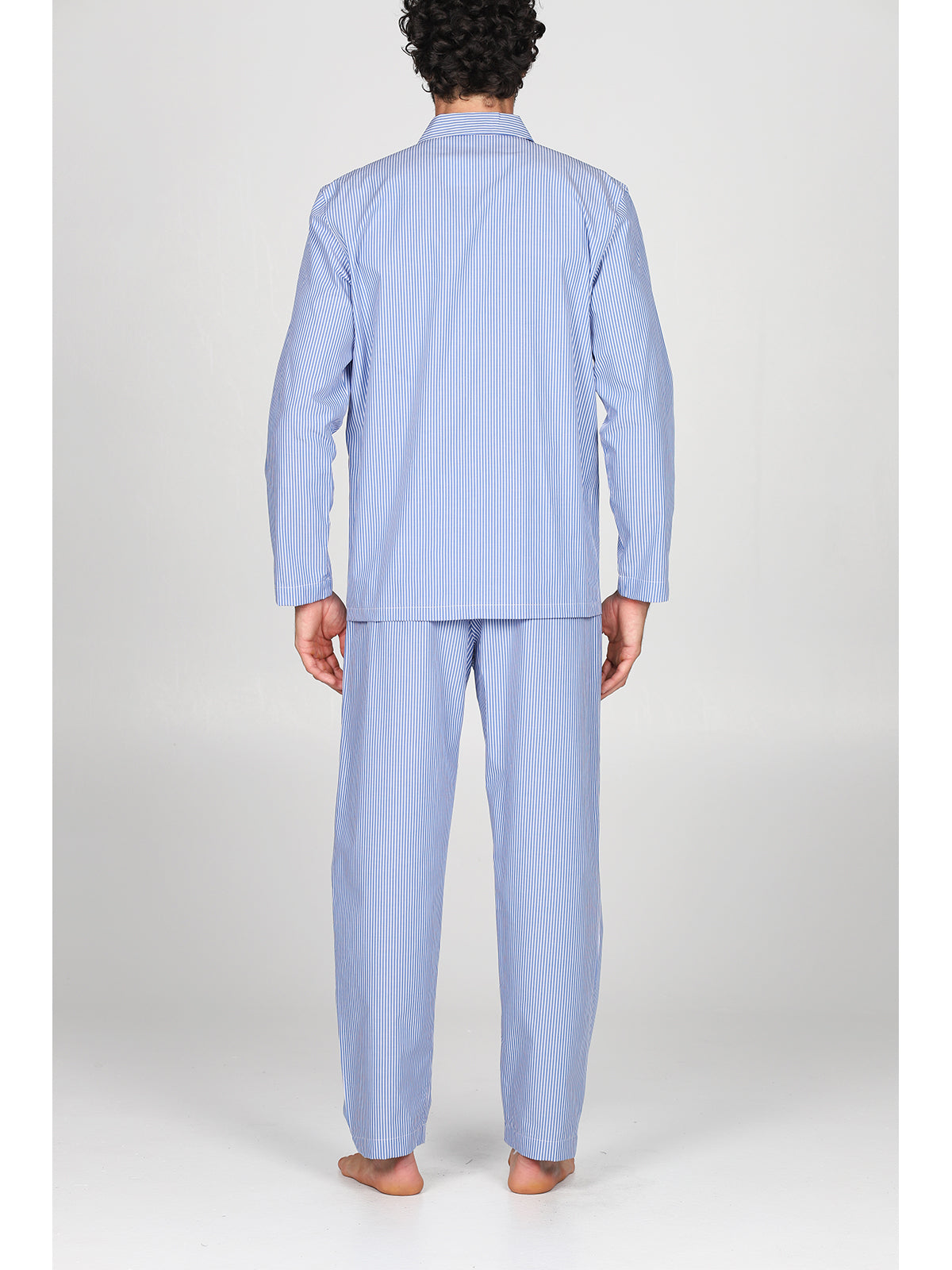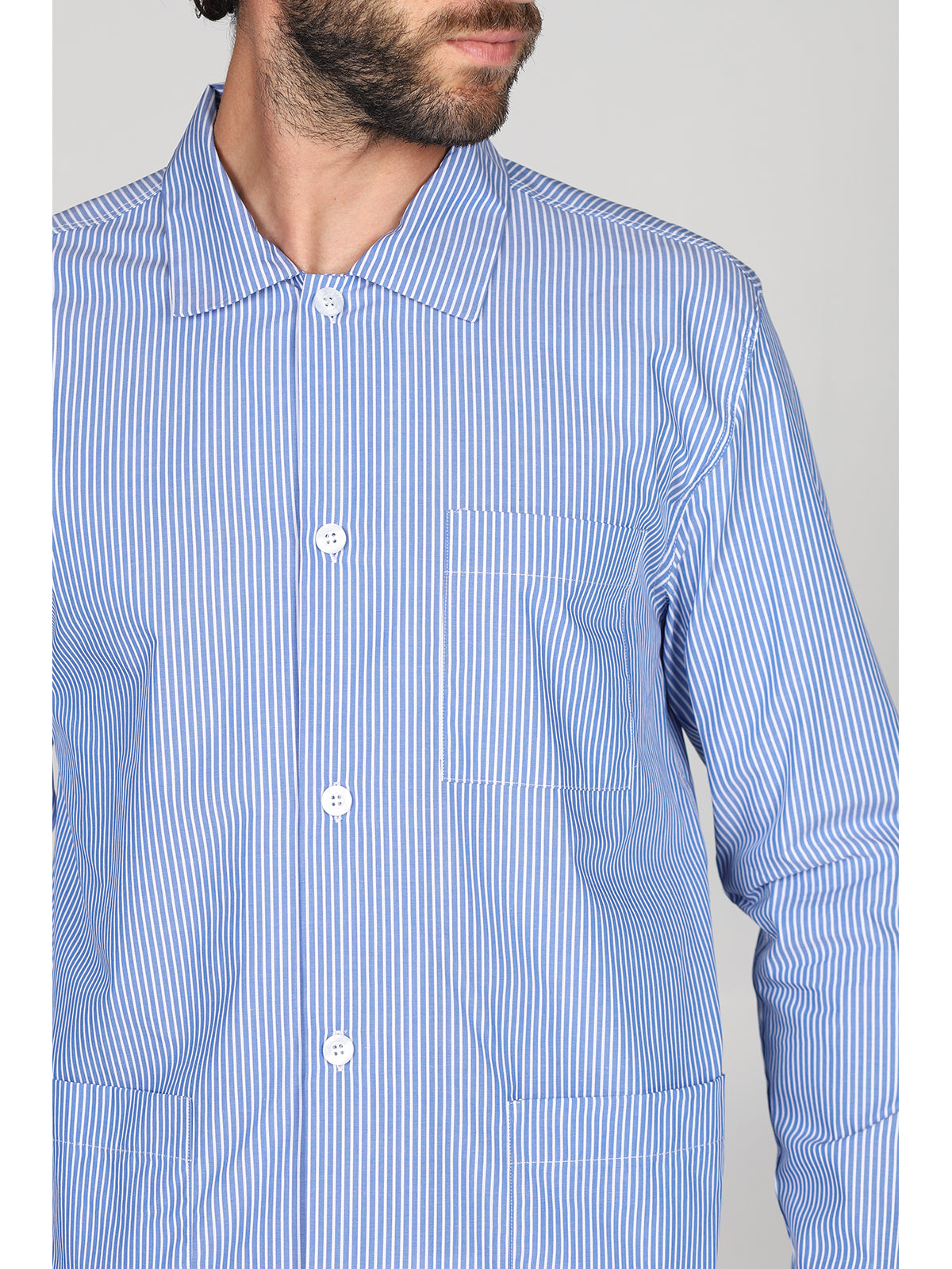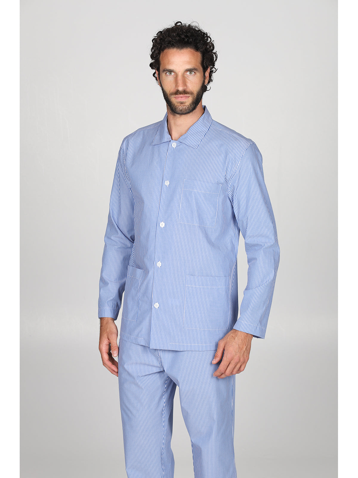 Pigiama cardigan classico uomo, in pregiato popeline tinto filo a righe
