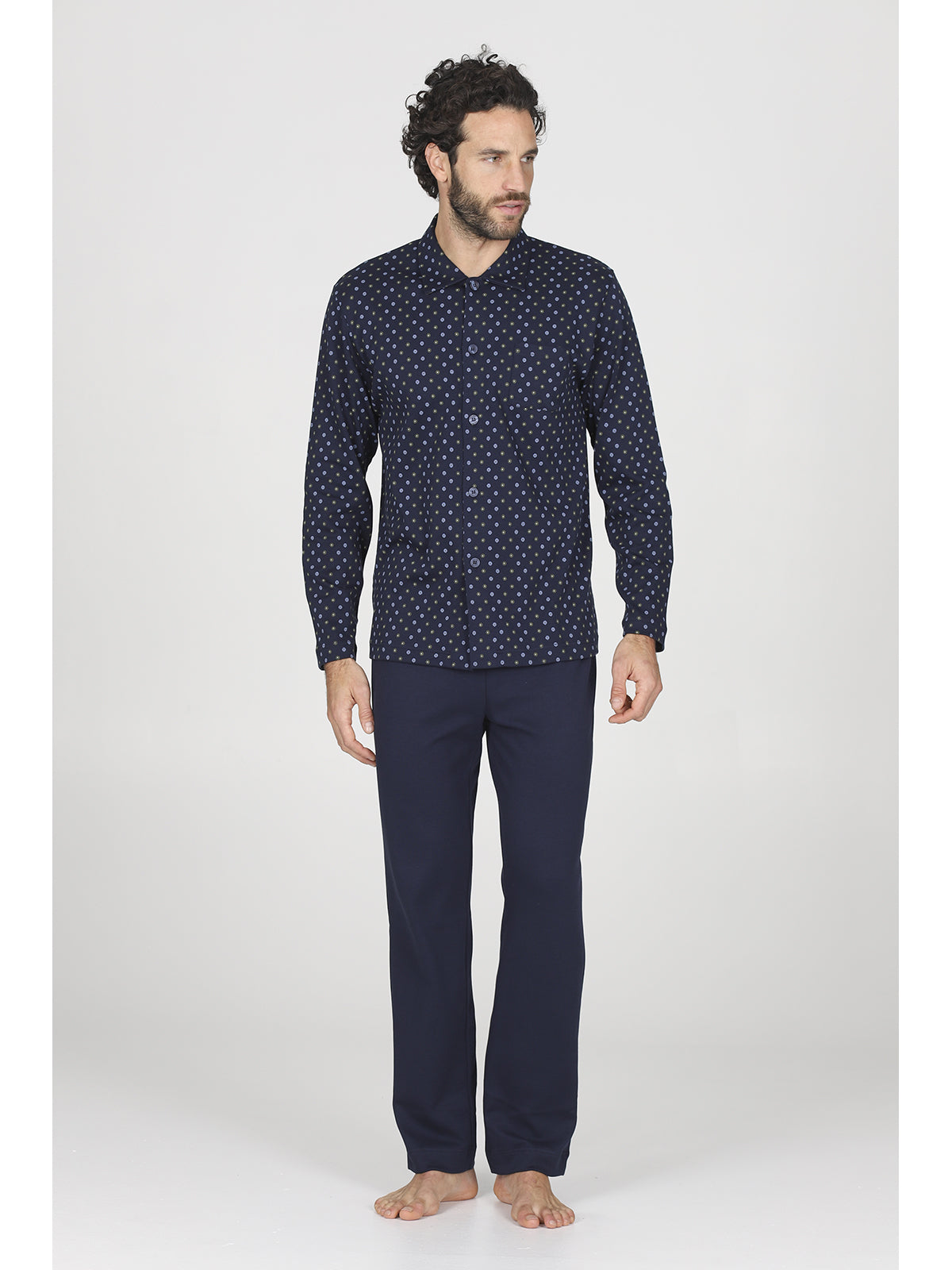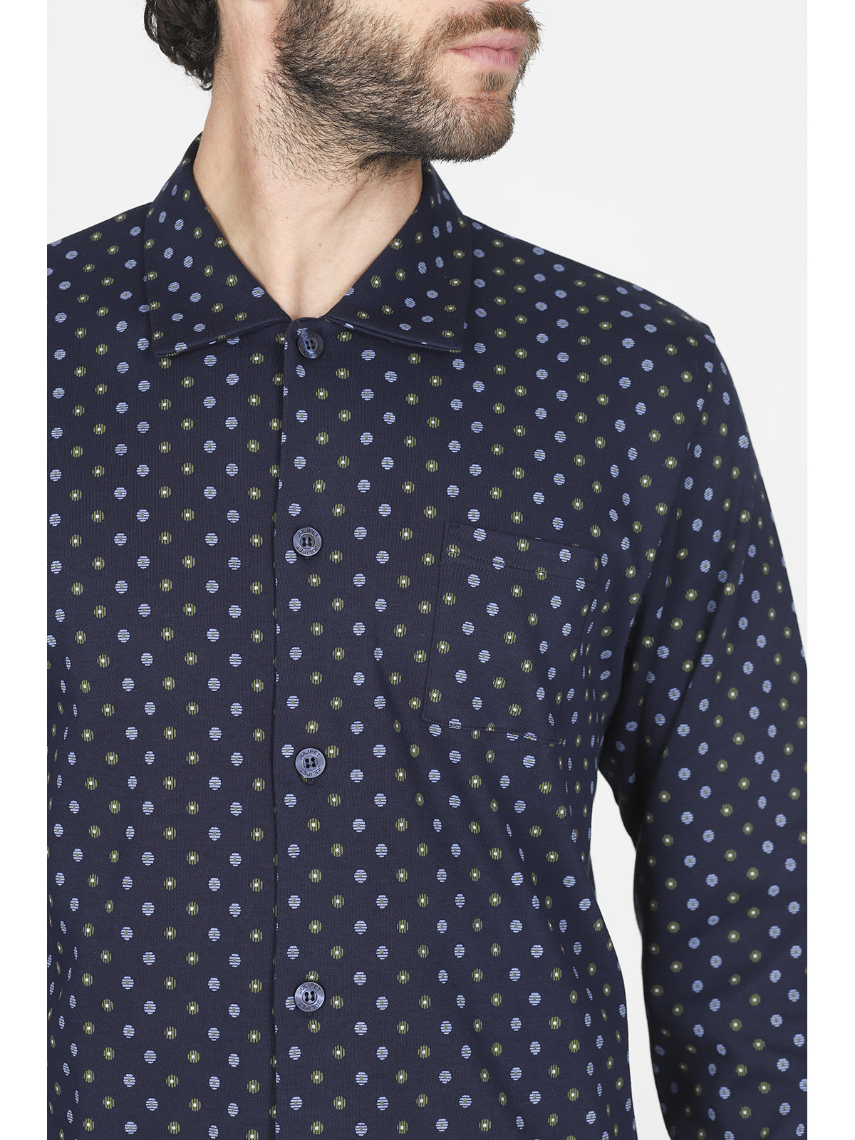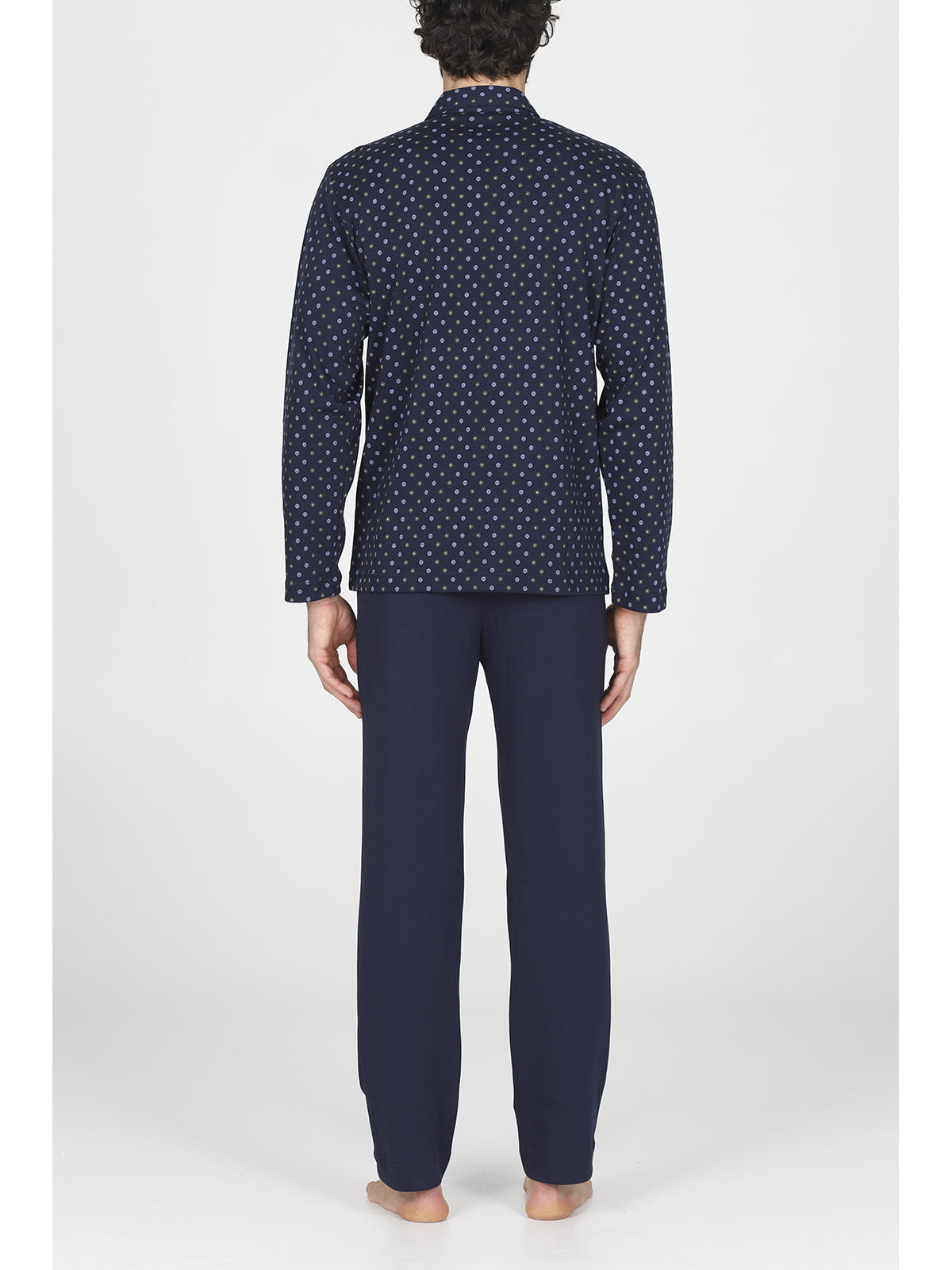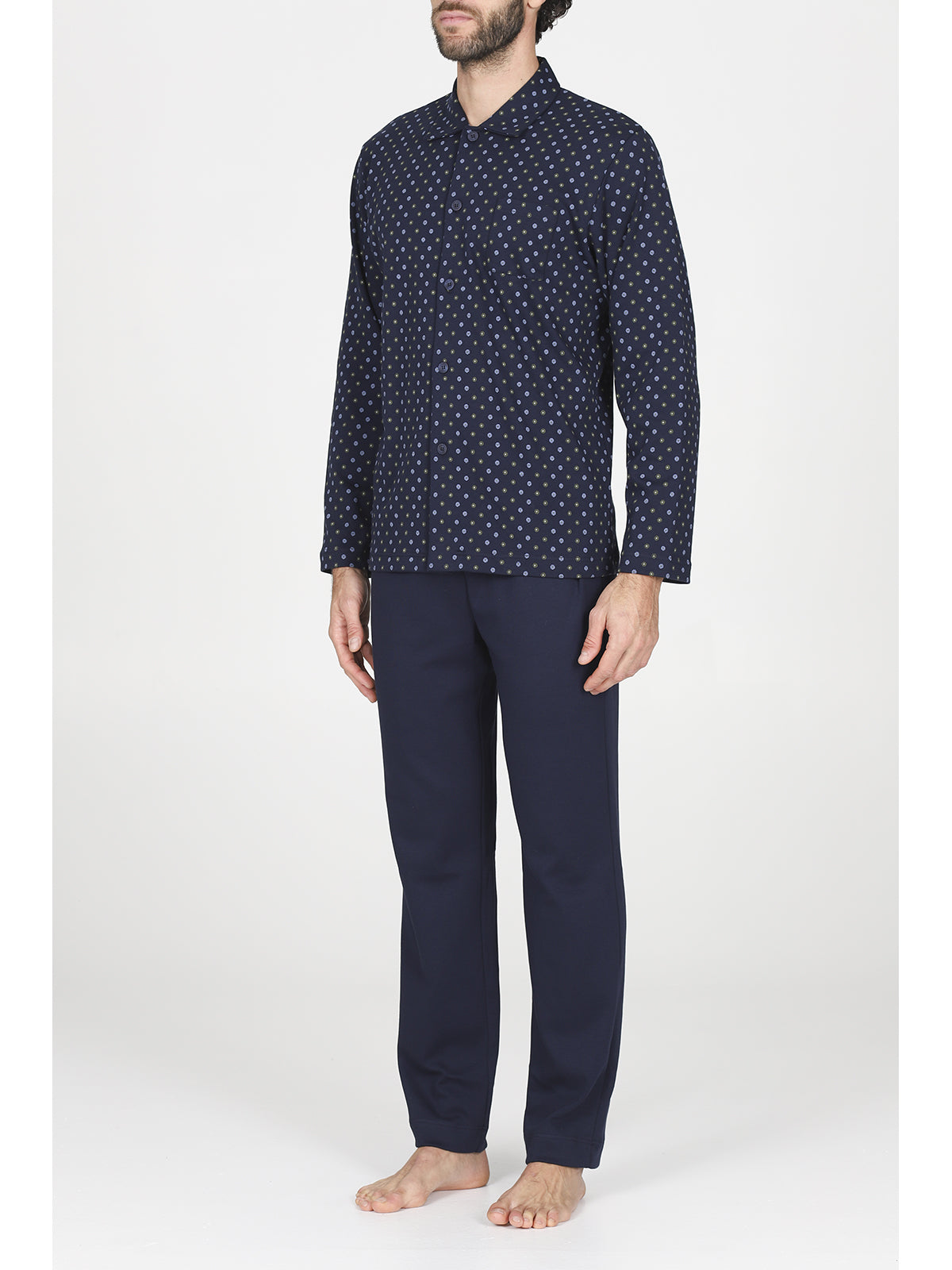 Pigiama cardigan in caldo interlock di puro cotone, fantasia classica