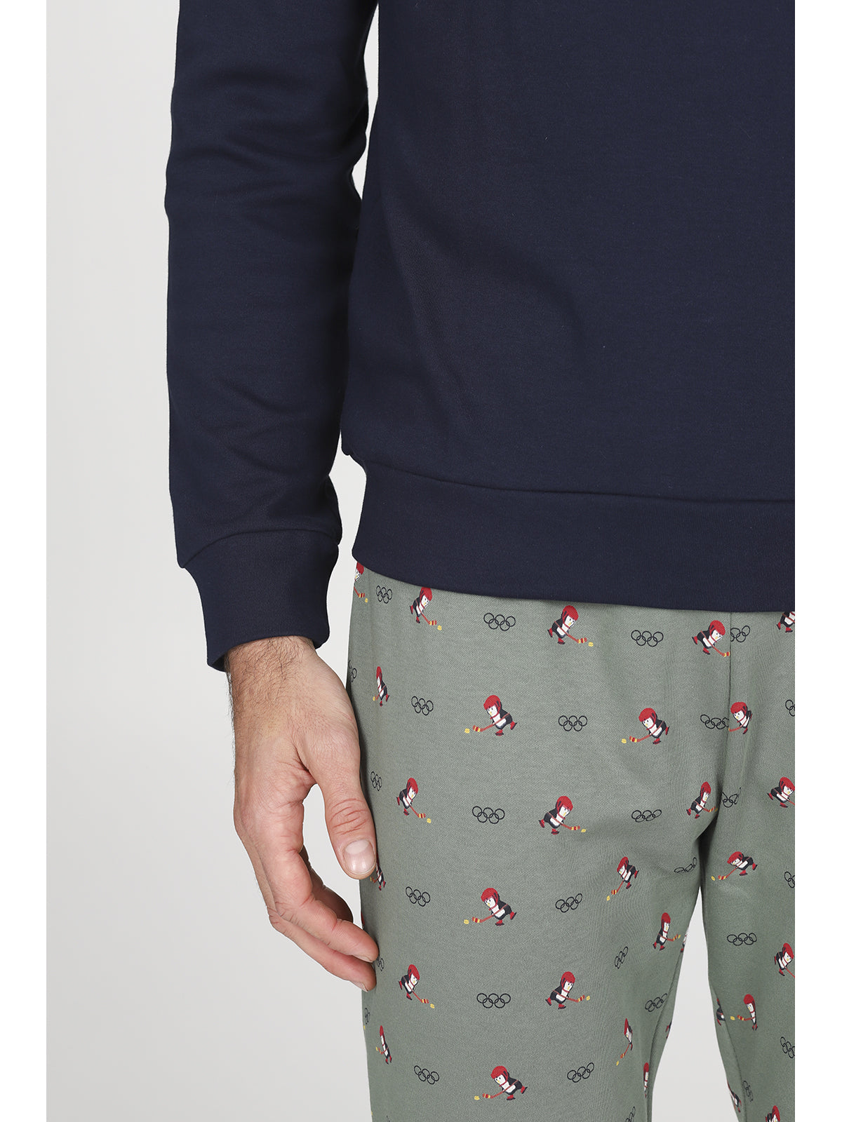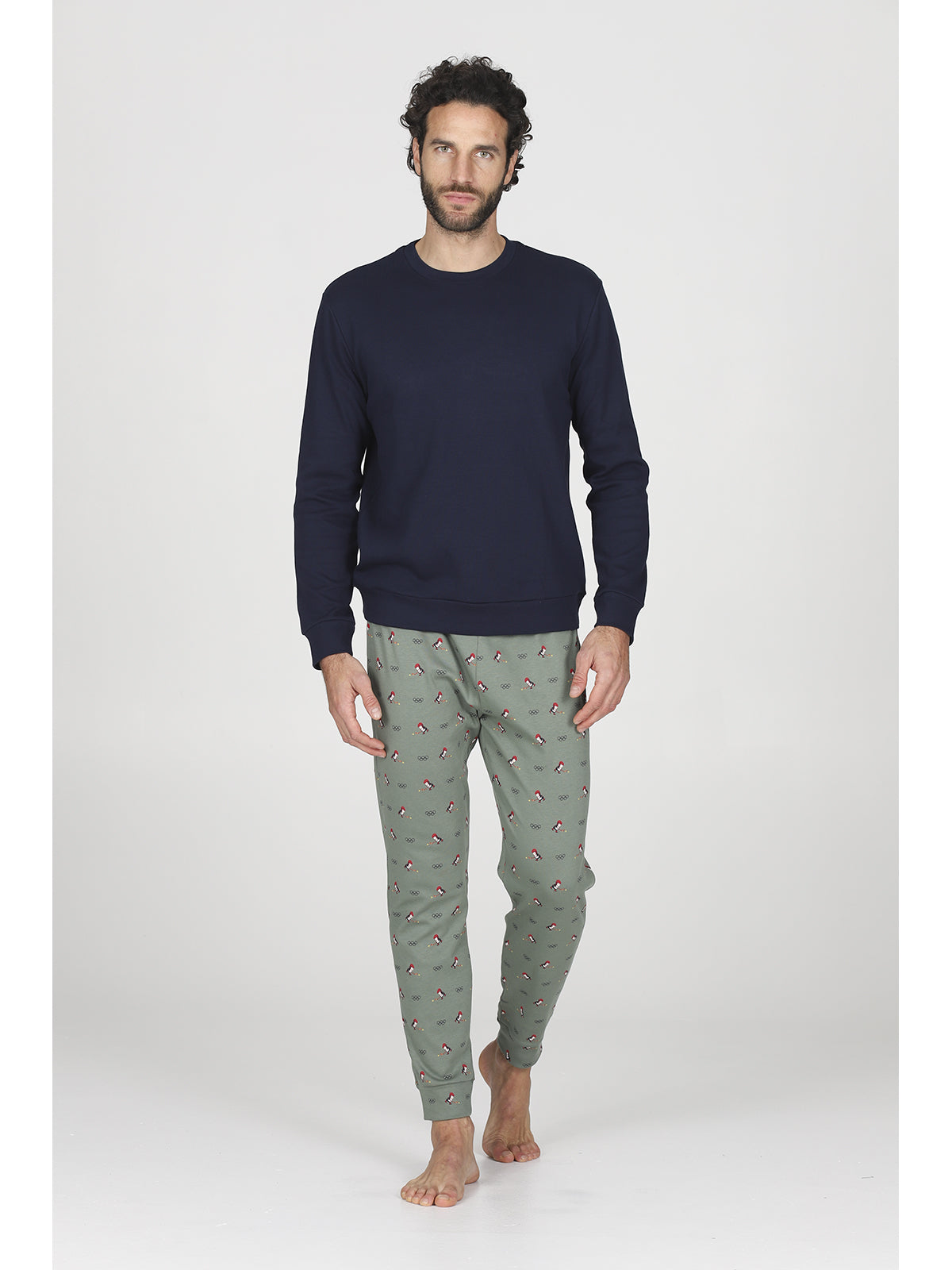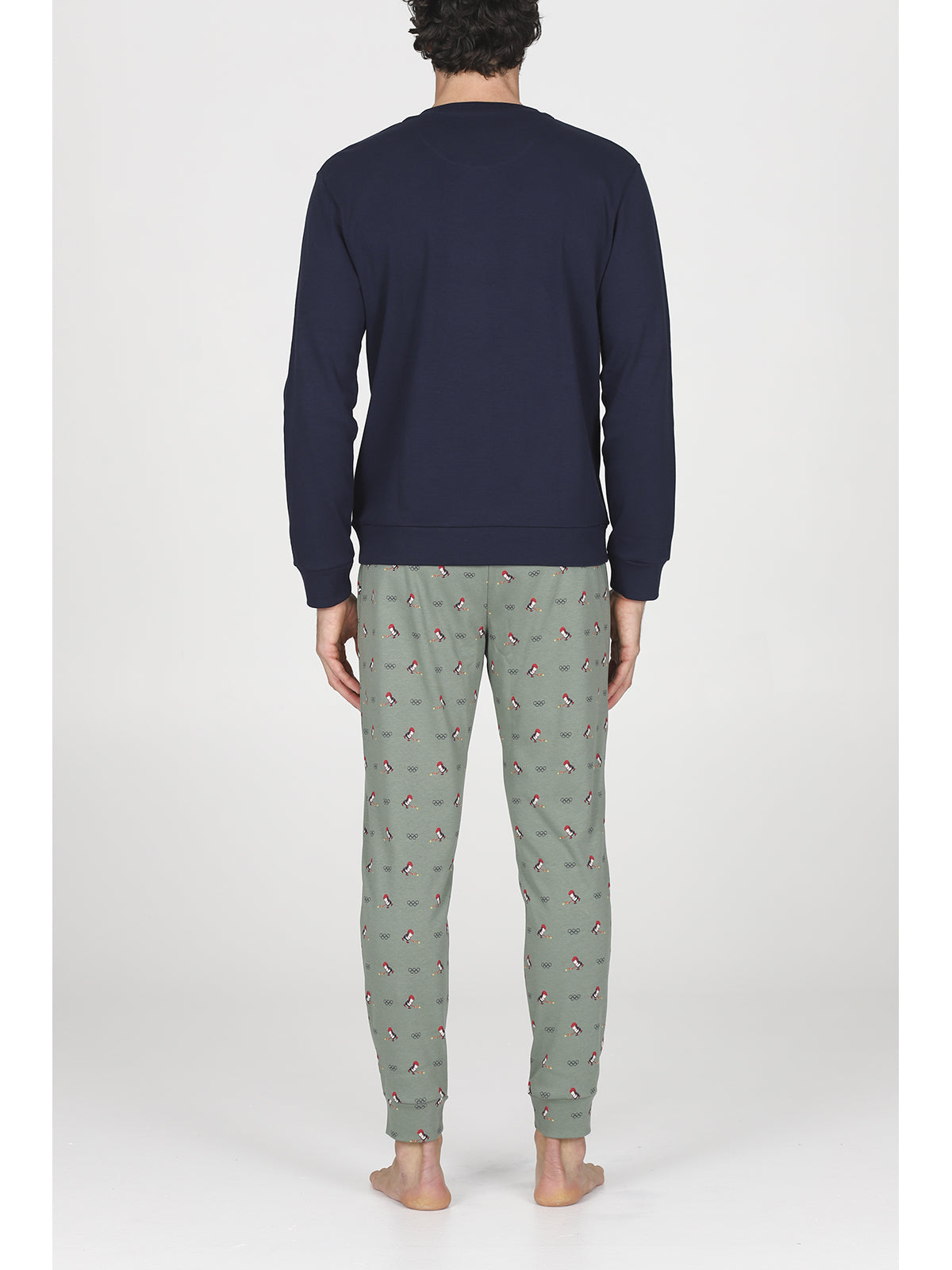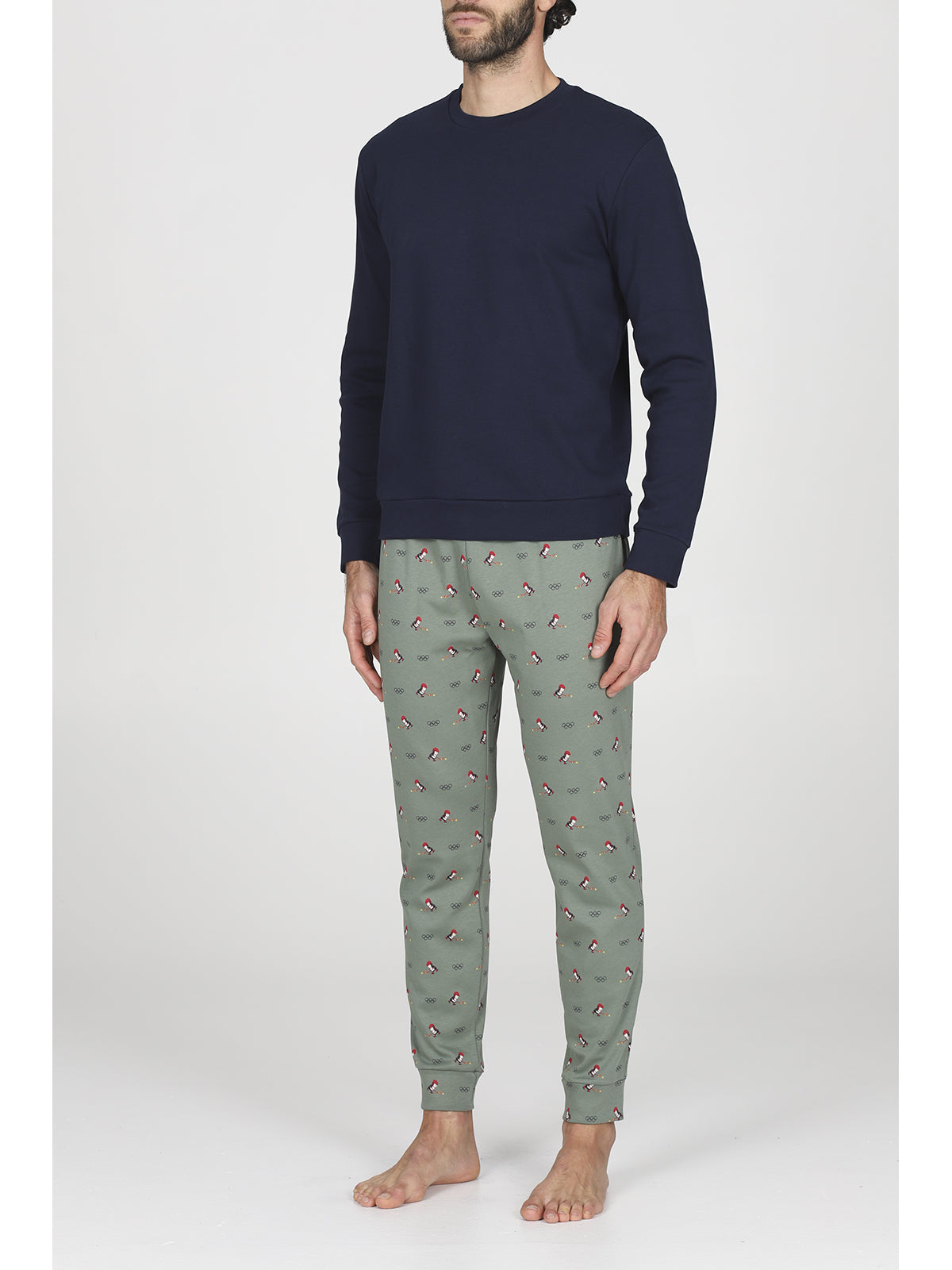 Pigiama lungo uomo, in interlock 30/1 di puro cotone. Morbido, caldo e naturale è adatto alle stagioni più fredde per un massimo comfort. Maglia girocollo in tinta unita e pantaloni in fantasia disegno pinguini, polsini elasticizzati. Equilibrio perfetto tra essenzialità e design ricercato: ideale per l’uomo che ama distinguersi anche a casa. Linea Artist Edition ispirata alle Olimpiadi Invernali 2026 di Cortina d'Ampezzo, occasione unica che celebra sport e tradizione alpina.
