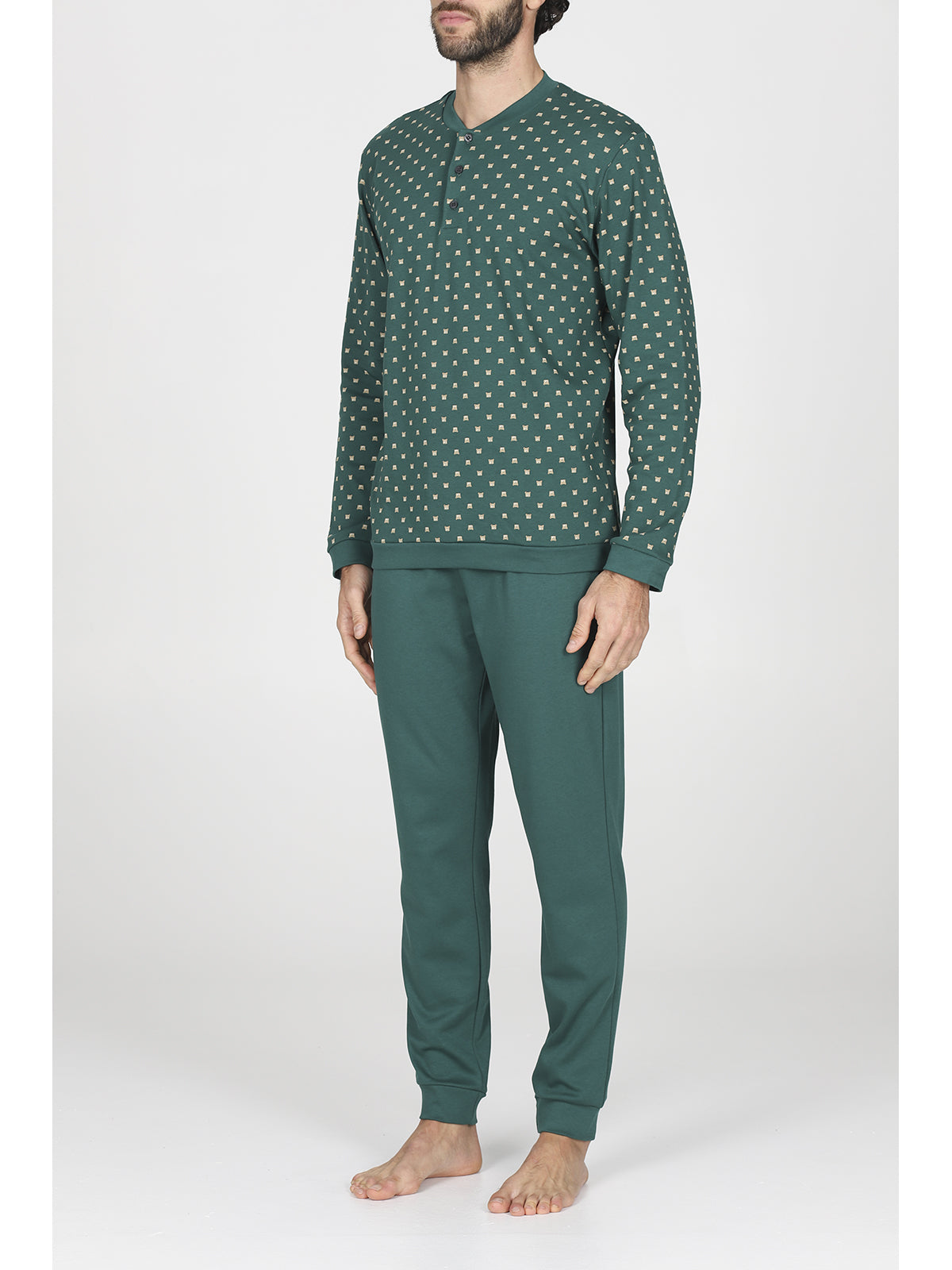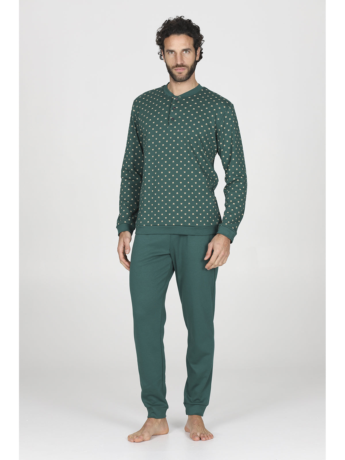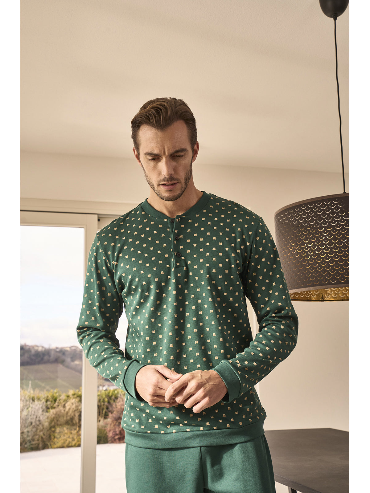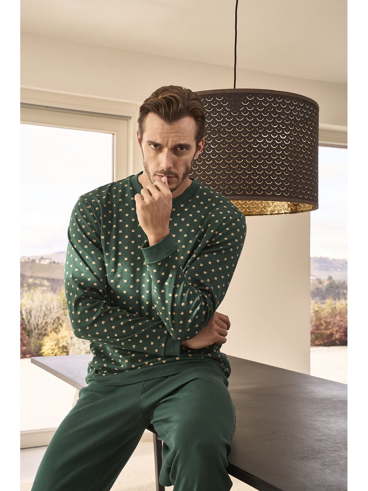 Pigiama serafino modello tuta, in caldo interlock di puro cotone