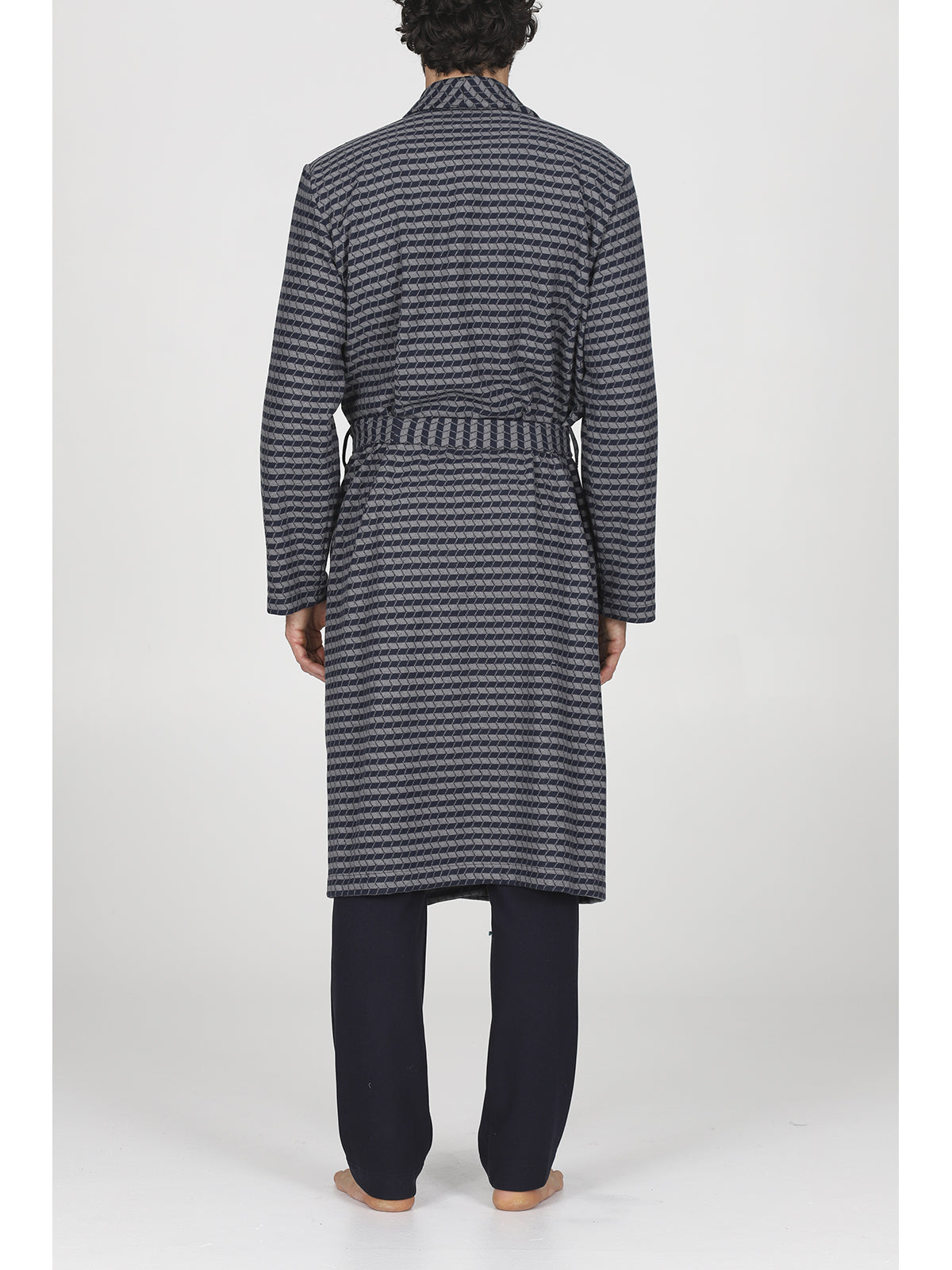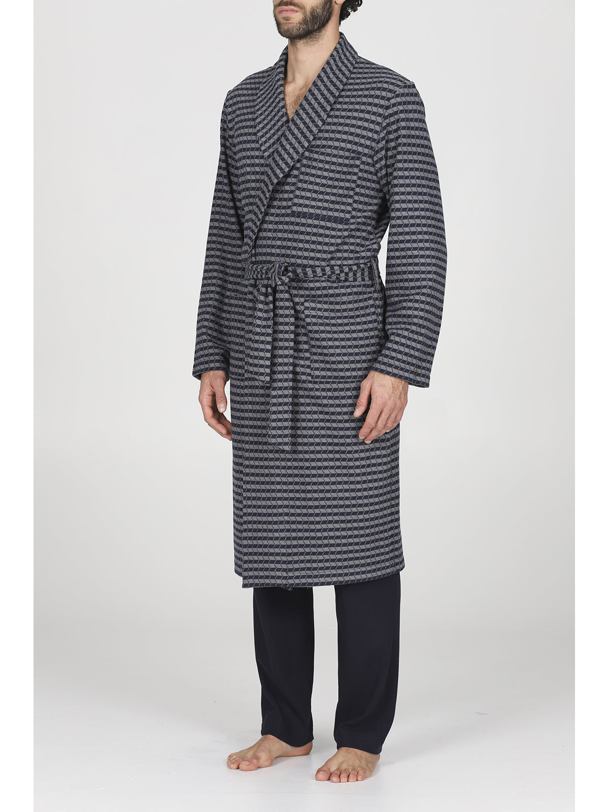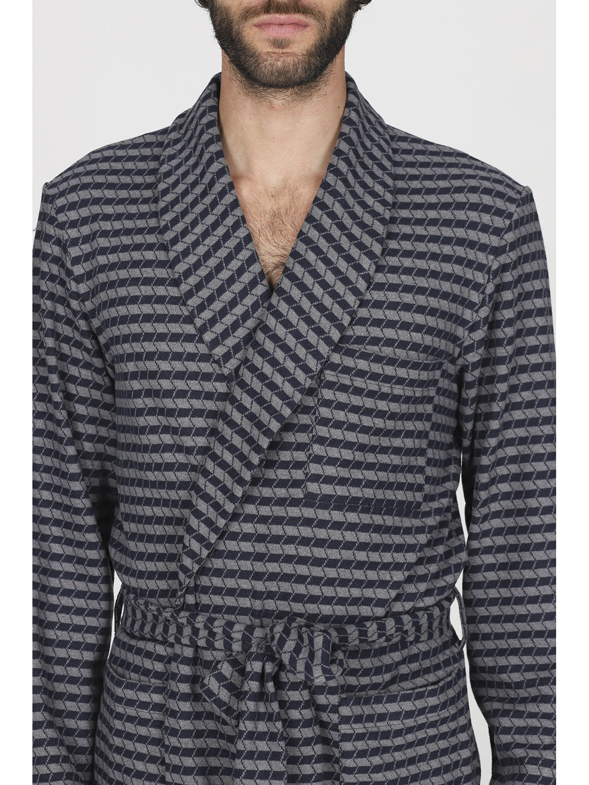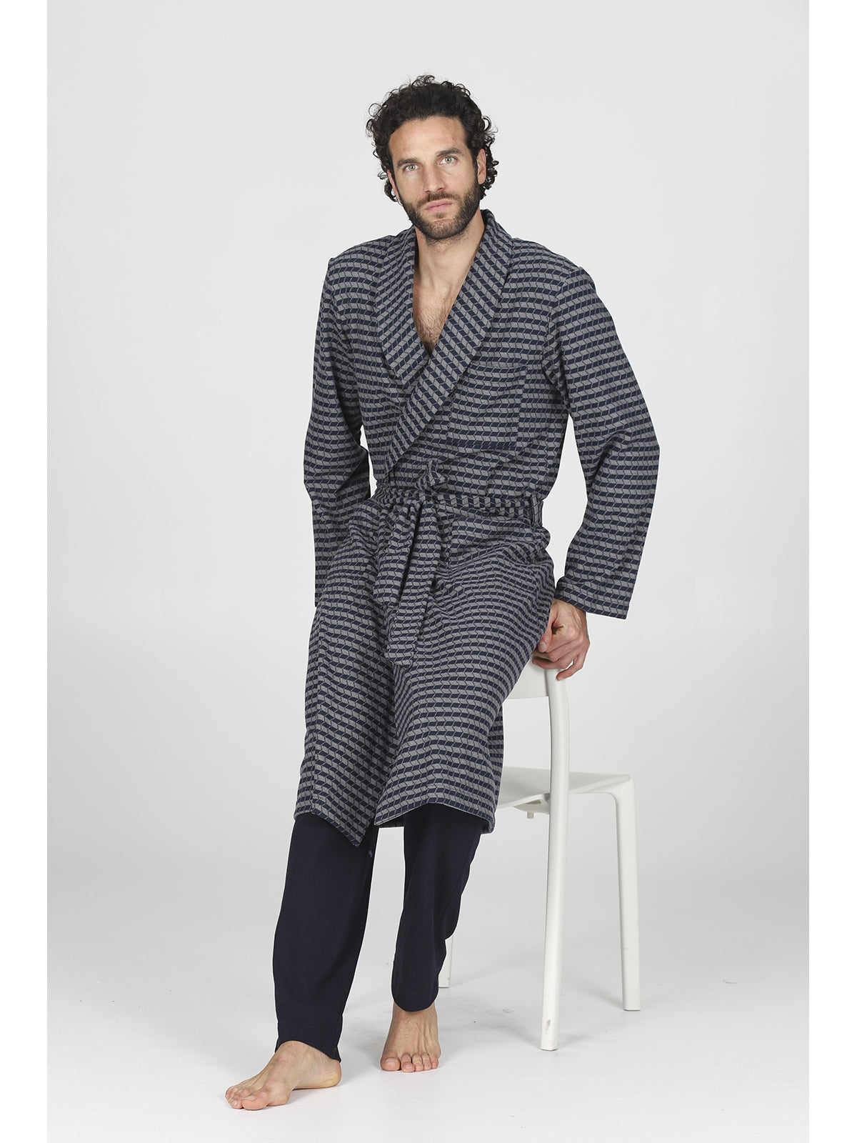 Vestaglia uomo in jacquard EcoLife di misto cotone: caldo, elegante e pratico è adatto sia per la notte che al vestire in casa per un massimo comfort. Collo sciallato e chiusura con cintura e passanti. Disegno geometrico all over. Per realizzare i nostri Jacquad abbiamo utilizzato il 50% di cotone e il 50% di tessuti Ecosostenibili scelti in base a criteri di basso impatto ambientale; come l'utilizzo di fibre prodotte grazie a energie rinnovabili e riciclo dell'acqua. Un'alternativa per un futuro più verde.