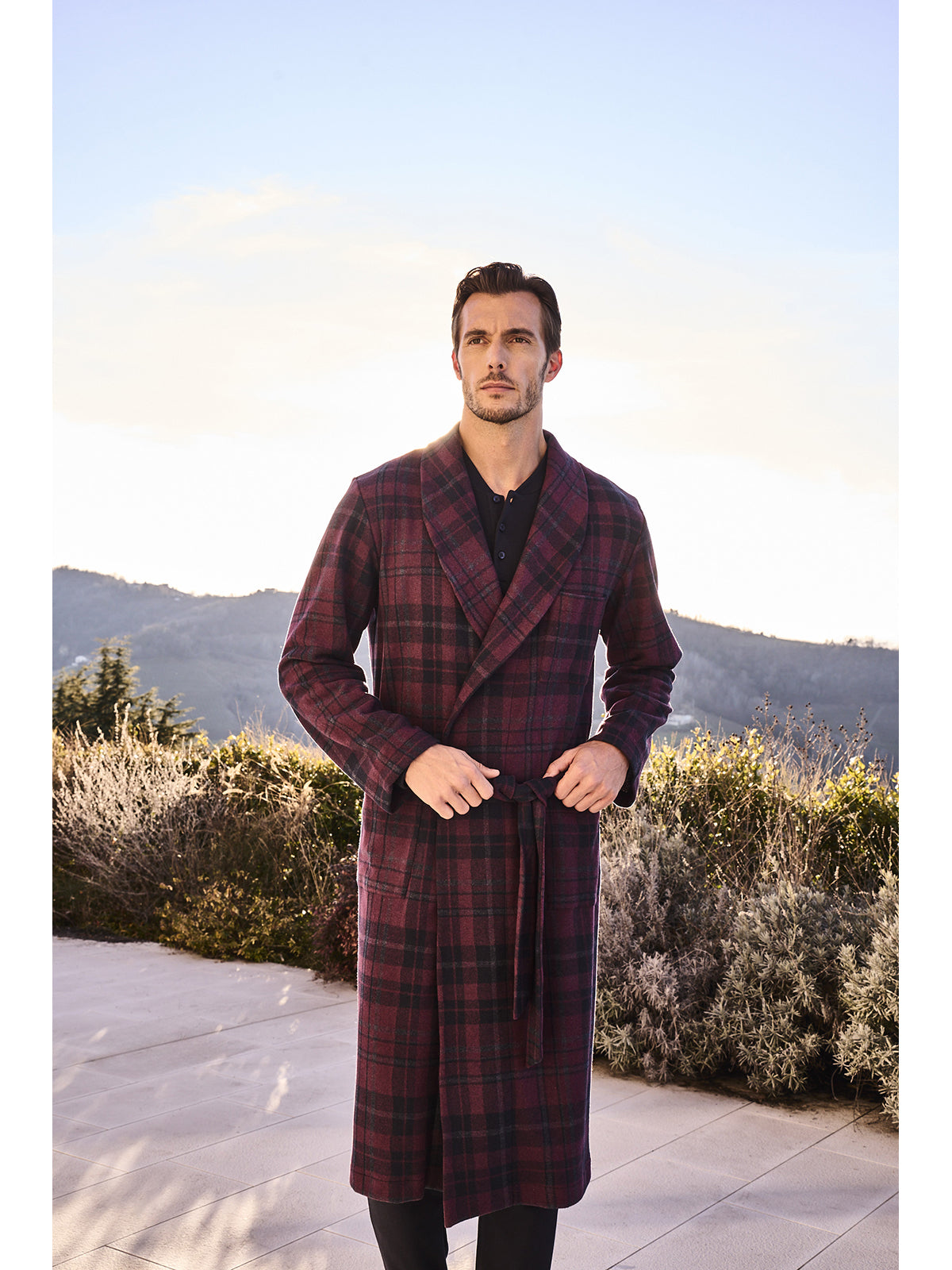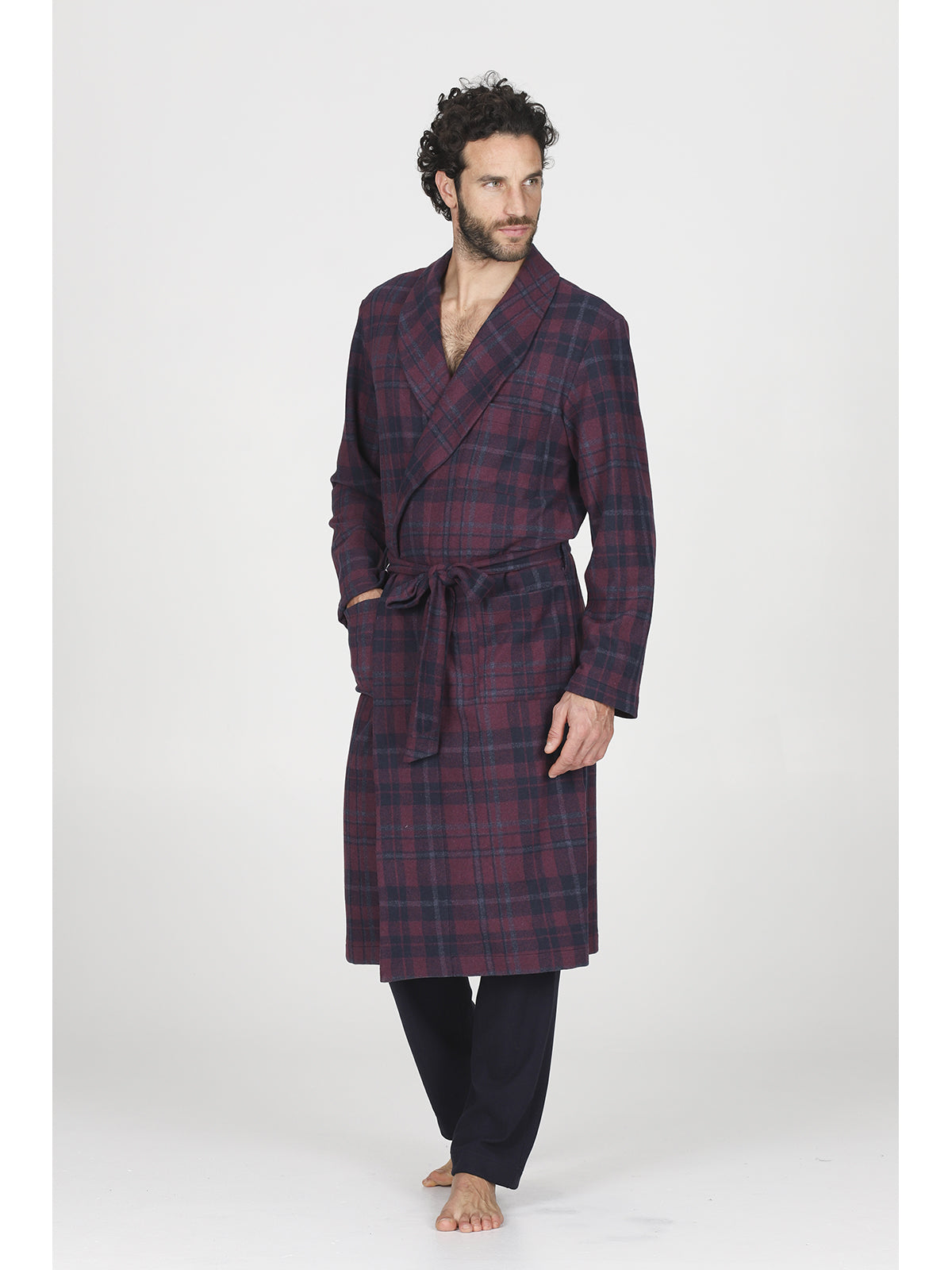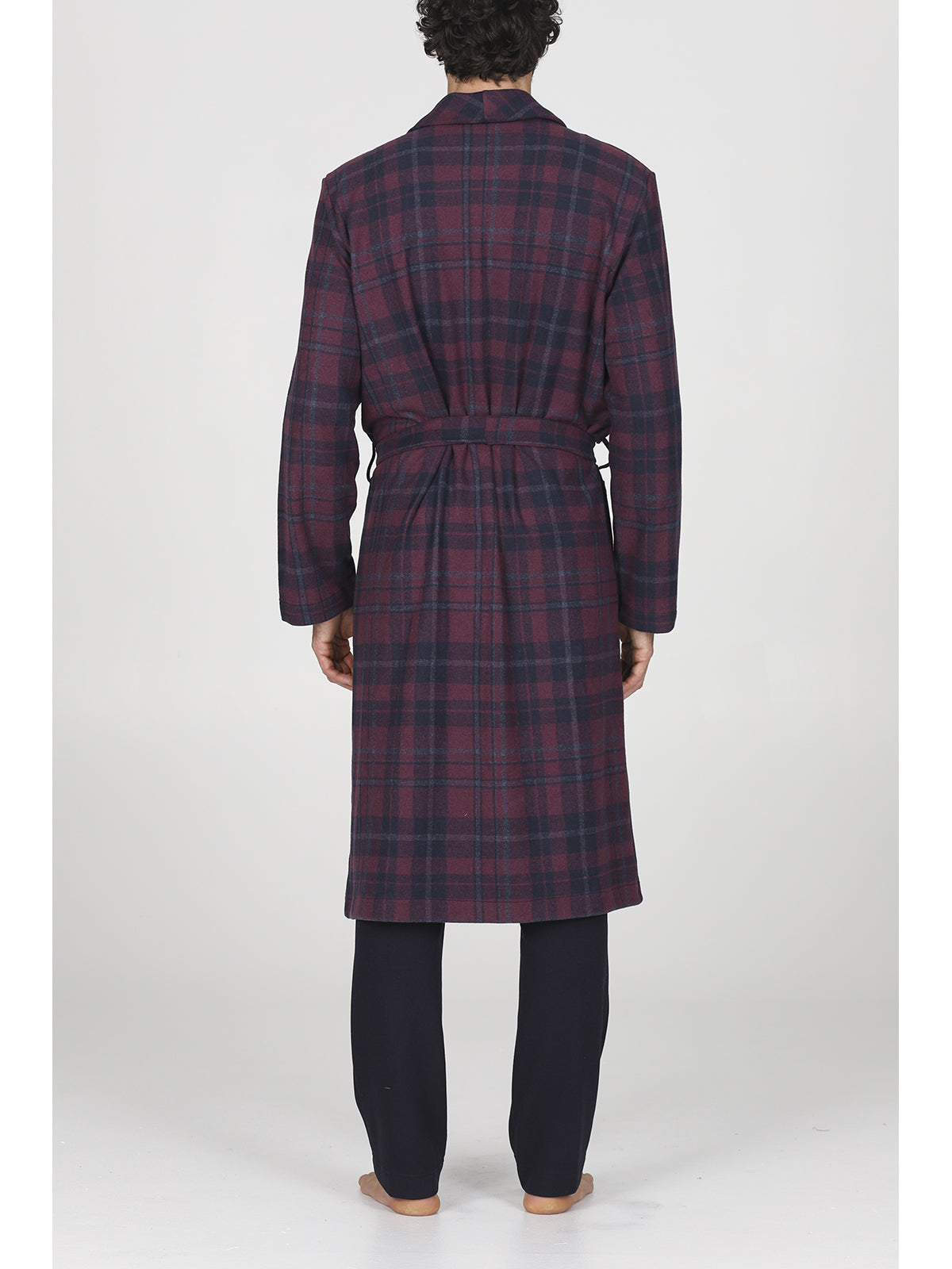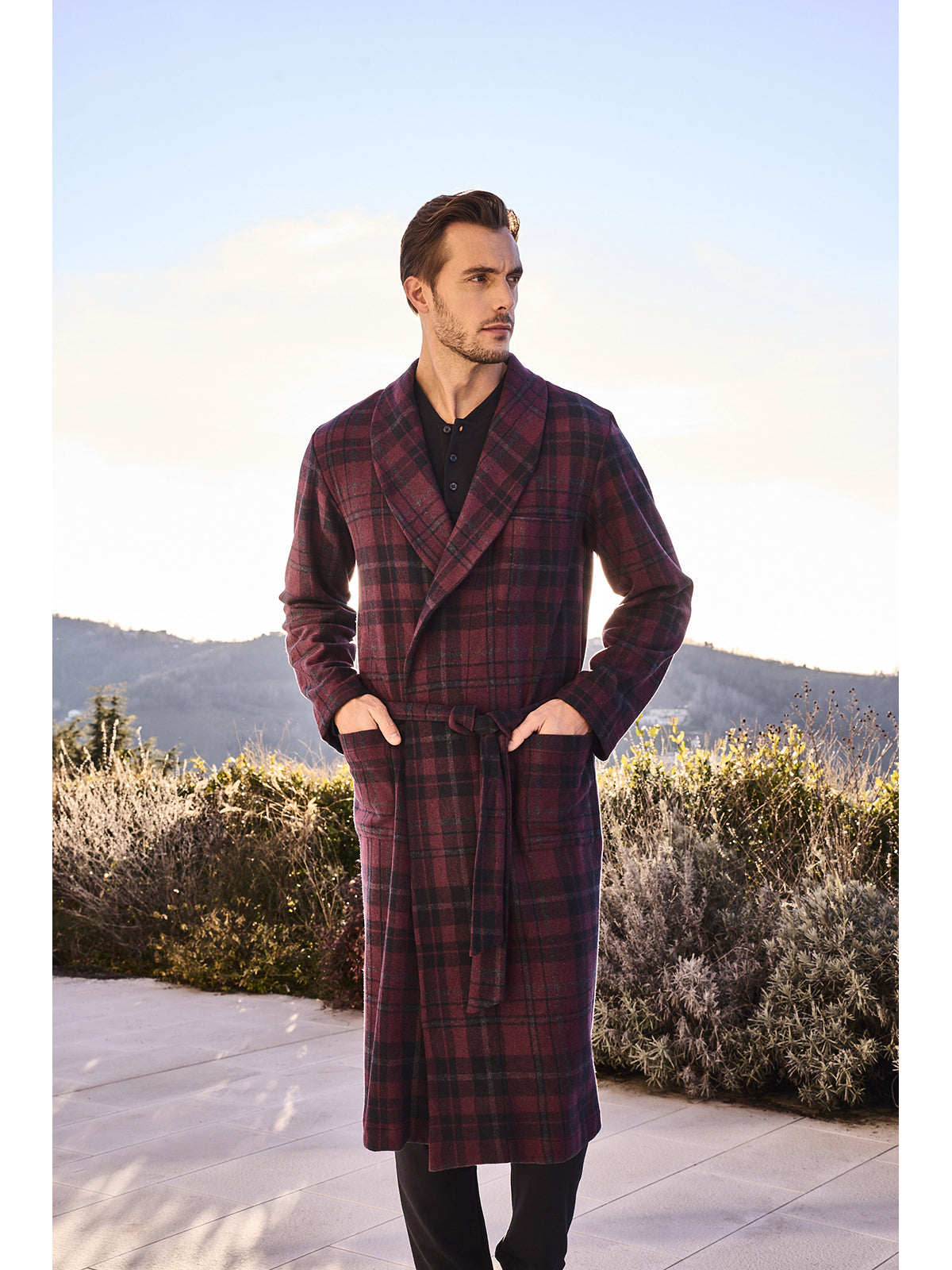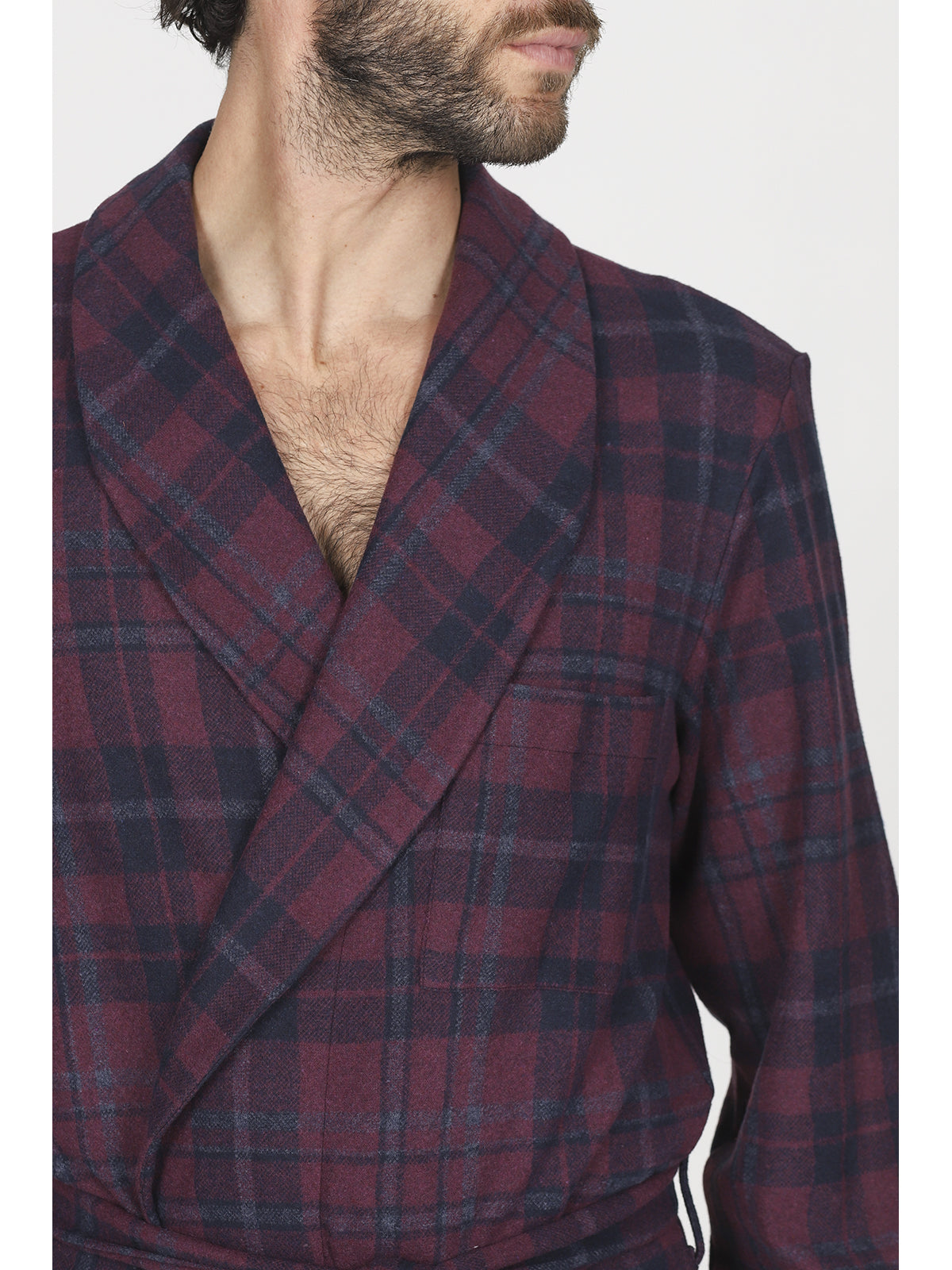 Vestaglia in confortevole jacquard di cotone scozzese bordeaux